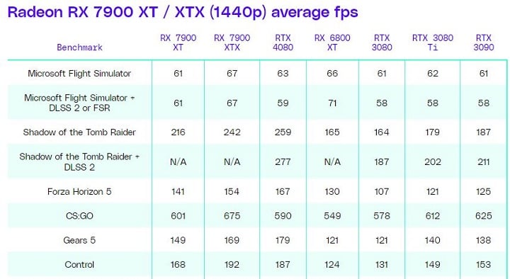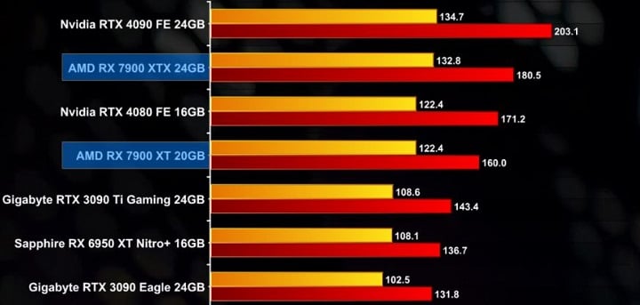 Как видите, AMD подготовила довольно удачные видеокарты, предлагающие хорошую производительность по конкурентоспособной цене. AMD Radeon RX 7900 XT отлично работает в разрешениях 1920x1080 и 2560x1440, но в разрешении 3840x2160 начинает немного отставать от соперников.