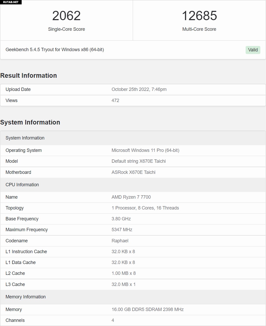 AMD Ryzen 7 7700 набирает 2062 балла в одноядерных и 12685 баллов в многоядерных тестах и получает минимальное улучшение в одноядерных тестах с разгоном, но многопоточный прирост производительности составляет 5 процентов. Наконец, у нас есть Ryzen 5 7600, который набирает 2012 баллов в одноядерных тестах и до 11326 баллов в многоядерных тестах.
