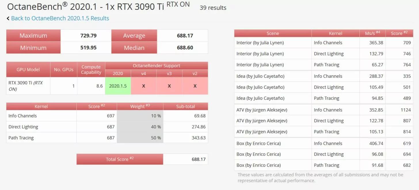 Одним из тестов, который может максимально раскрыть потенциал графического процессора, является Octanebench. Он используется для целей рендеринга и может максимизировать пропускную способность графических карт практически без необходимости оптимизации драйверов. Недавно NVIDIA RTX 4070 Ti была замечена в базе данных Octanebench. Данная видеокарта превзошла модель RTX 3090 Ti на солидные 5%.