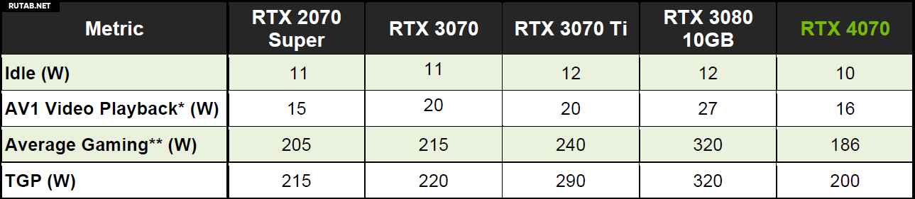Профили энергопотребления NVIDIA GeForce RTX 4070: