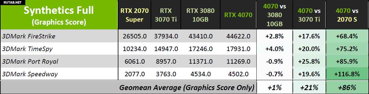 Синтетические тесты NVIDIA GeForce RTX 4070: