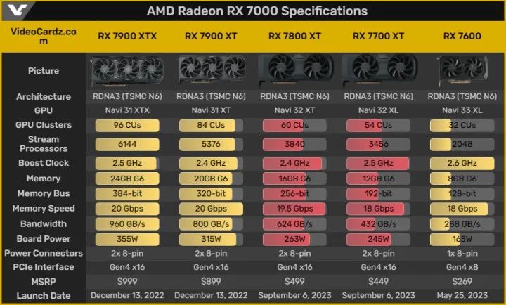 Будет ли достаточно пяти видеокарт, чтобы конкурировать с линейкой Nvidia, у которой гораздо больше моделей поколения RTX 40? Однако стоит отметить, что это связано в основном с вариантами «Ti» RTX 4070 и RTX 4060. Кроме того, у RTX 4060 Ti есть две версии, которые различаются лишь объемом памяти. Некоторым игрокам это может показаться неясным, но список моделей AMD кажется более простым — сразу понятно, какая карта стоит выше в иерархии. Ниже краткий обзор обновленной линейки видеокарт AMD: