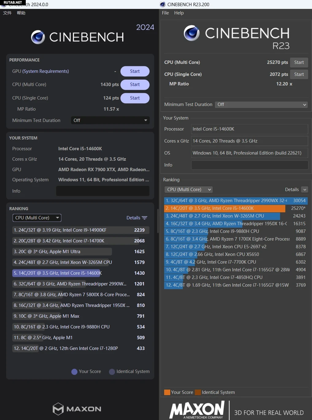 Результаты тестов процессора Intel Core i5-14600K были опубликованы пользователем Enthusiast Citizen на сайте Bilibili. Протестированный процессор представляет собой часть инженерный образец, работающий на материнской плате Z790 с картой RX 7900 XTX. Похоже, что ручной разгон не использовался, и чип тестировался в стандартной конфигурации, что дает нам четкое представление о том, чего можно ожидать от процессора при запуске. Охлаждающее устройство не было упомянуто, но источник информации упомянул, что 8 P-ядер потребляют напряжение более 1,4 В, что довольно высоко, и это может быть исправлено с помощью розничного чипа, который будет поставляться потребителям в следующем месяце.