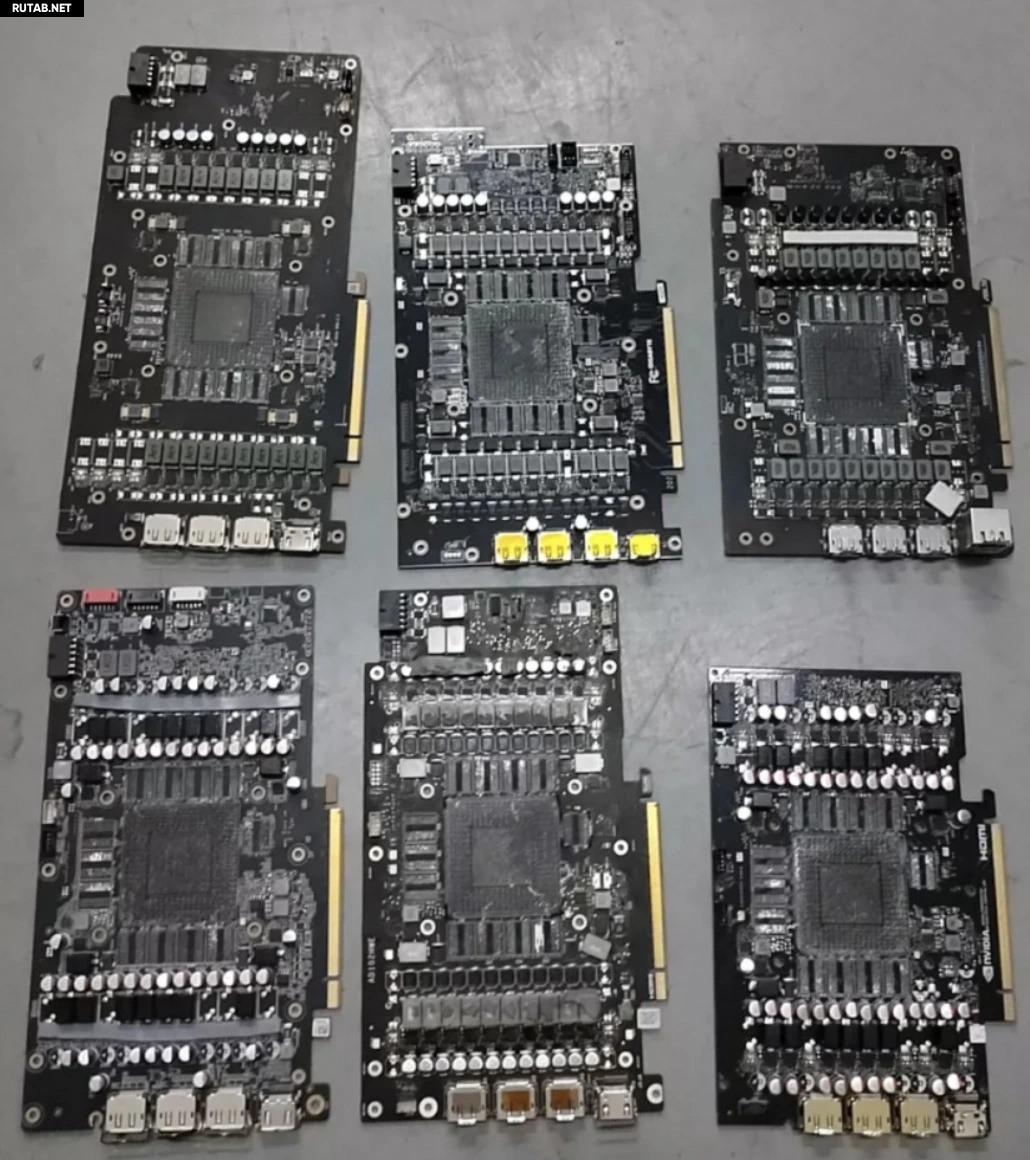 Каждая карта занимает 3 или 4 слота, что означает, что она занимает слишком много места, а это не очень подходит для серверной среды искусственного интеллекта. Поэтому рабочие на этих фабриках разбирают каждую видеокарту. Сначала разбираются массивные кулеры, а затем с основной платы вынимается все, включая графический процессор и память GDDR6X. Заявлено, что была разработана специализированная «эталонная» печатная плата, которая дает графическим процессорам AD102 и памяти GDDR6X новую жизнь.