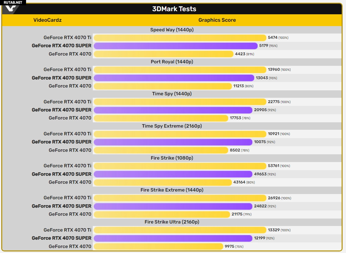 Тесты Nvidia RTX 4070 Super в 3DMark показывают хороший прирост производительности