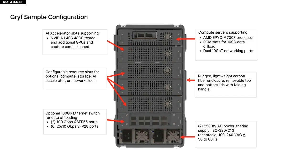 Gryf — это суперкомпьютер размером с чемодан, поддерживающий дезагрегацию и реагрегацию графических процессоров. Пользователь может на лету настроить аппаратную конфигурацию компьютера в полевых условиях. Вы можете создать оптимальную конфигурацию оборудования для одной назначенной рабочей нагрузки, а затем изменить ее для следующей.