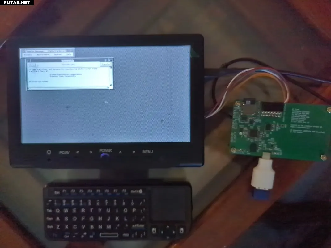 Далее вы все отладите, протестируете соединения и установите операционную систему и программное обеспечение. Создатель использует эмулятор проекта LinuxCard компании Дмитрий.ГР, а также собственную эмулируемую среду Ultrix/DECWindows. Имеется поддержка комбинации USB-клавиатуры и мыши, монохромной графики VGA с разрешением 1024 x 864 и сети Ethernet.
