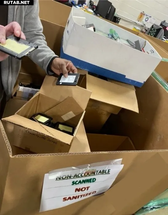 Большая открытая коробка с неподотчетными носителями информации в зоне сдачи имущества (Фото предоставлено Управлением генерального инспектора США)