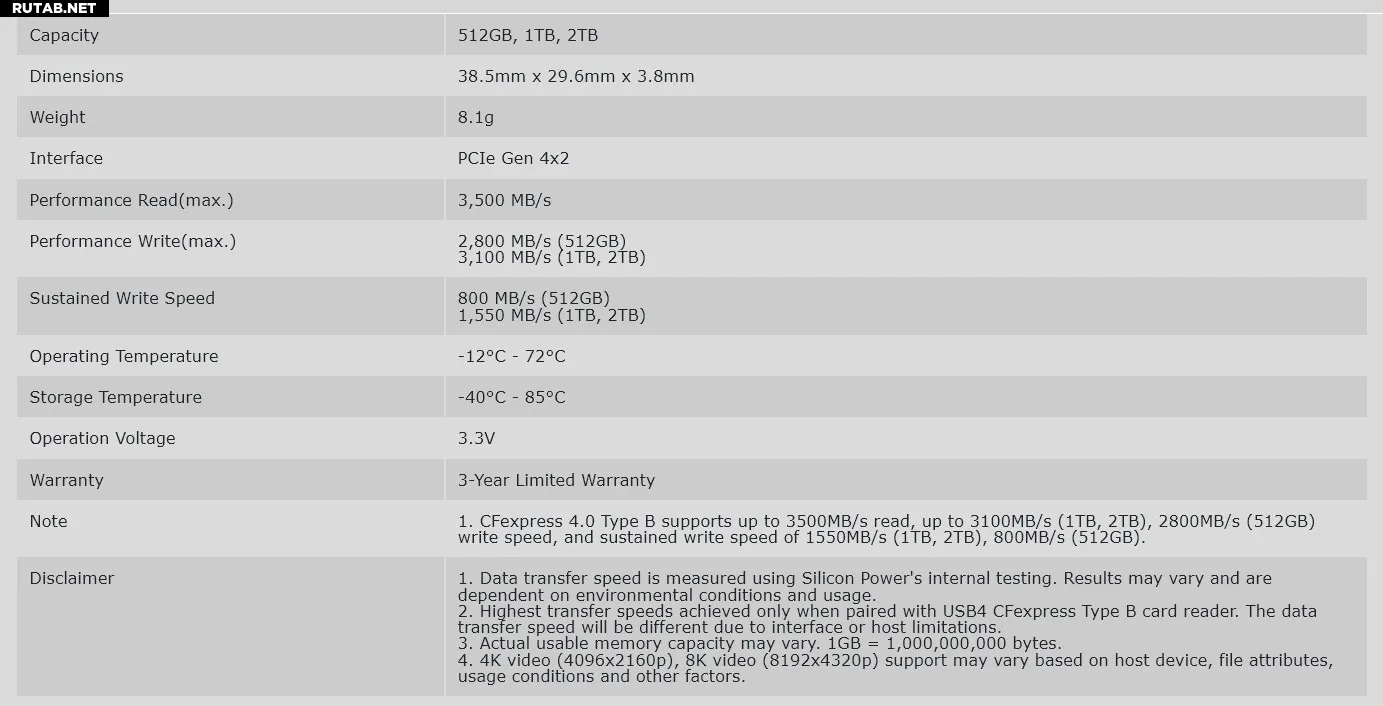 Компания Silicon Power (SP) рада объявить о выпуске своего новейшего высокопроизводительного решения памяти — карты памяти StudioPro CFexpress 4.0 Type-B. Тщательно разработанная для удовлетворения потребностей профессиональных фотографов, режиссеров и создателей контента, эта карта обеспечивает непревзойденную производительность и надежную долговечность, поддерживая требования записи видео 4K и 8K с экстремальной скоростью и огромной емкостью до 2 ТБ.