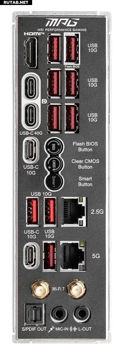 Это материнская плата среднего класса, однако без официального листа спецификаций нам остается только пытаться расшифровать детали по картинкам. Из того, что мы видим, она предлагает солидный набор функций, включая USB 3.2, порты USB Type-C, BIOS Flash, Clear CMOS и Smart Buttons. Сама плата включает в себя 8-контактный разъем PCI-E и как минимум три слота M.2. В настоящее время нет информации о ее розничной цене.