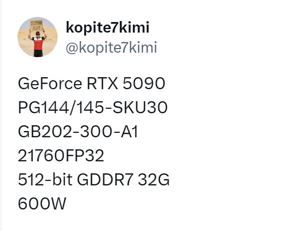 Источник: kopite7kimi (RTX 5090)