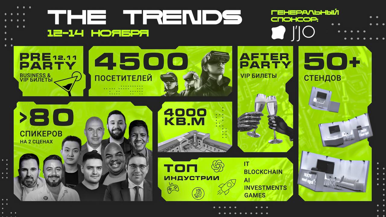 - 12 ноября, 19:00 - 23:00 пройдет невероятное PRE-PARTY THE TRENDS при организационном участии CONNECT от Анастасии Староверовой. В активности участвуют только спикеры и партнеры форума, а также люди, которые приобрели VIP билеты на форум.