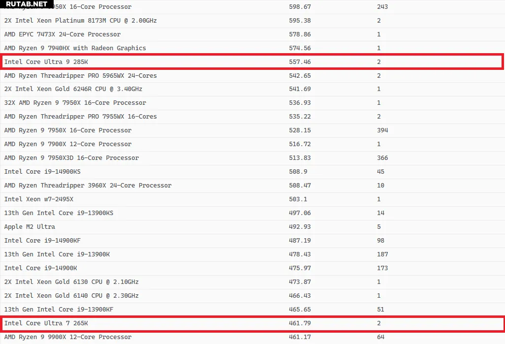 Предстоящий процессор Intel Core Ultra 9 285K, флагман линейки Core Ultra 200S, был замечен в CPU-Z (через momomo_us) и Blender (через HXL). Первоначальная производительность несколько разочаровывает; однако это может быть связано с используемым тестовым стендом и условиями эксплуатации, по крайней мере, в CPU-Z.
