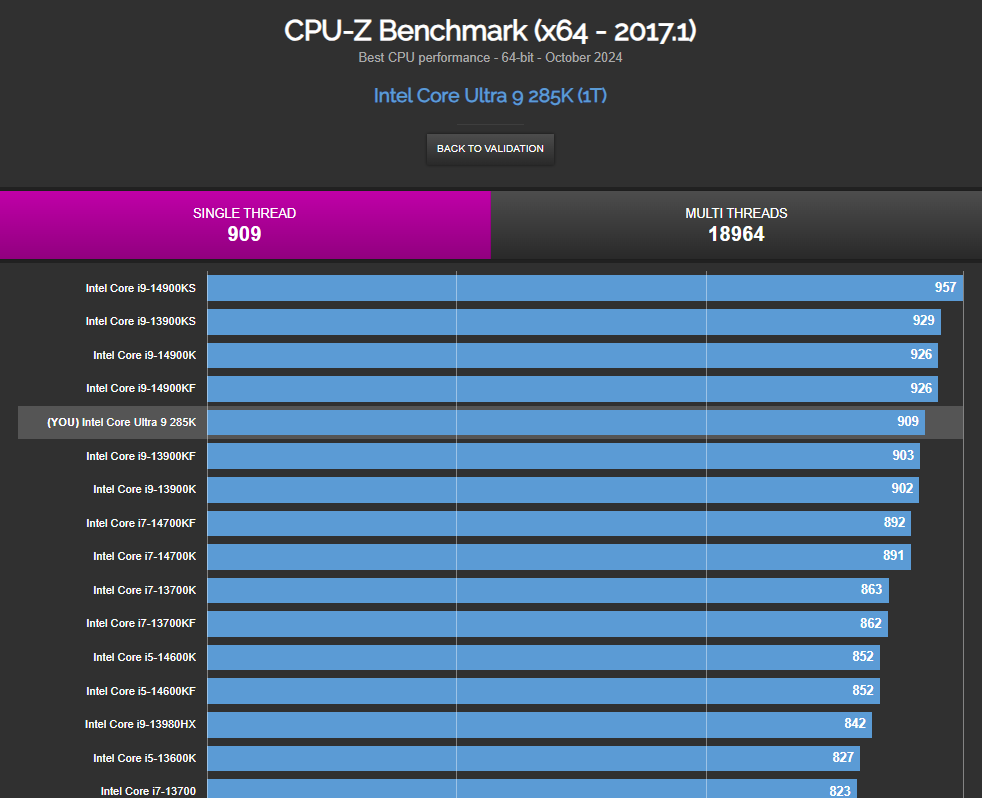 Розничные образцы Core Ultra 9 285K протестированы в CPU-Z и Blender