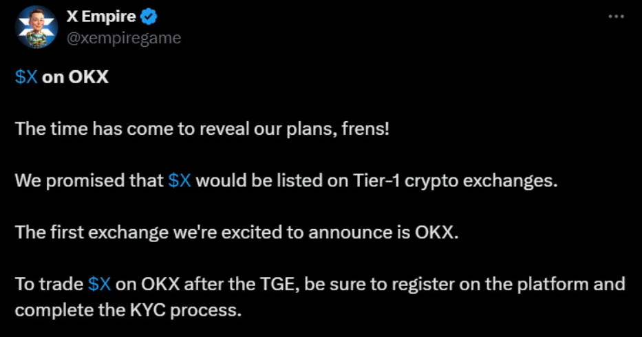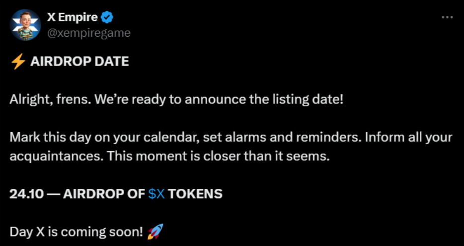 Ранее команда X Empire объявила о листинге токена X 24 октября.