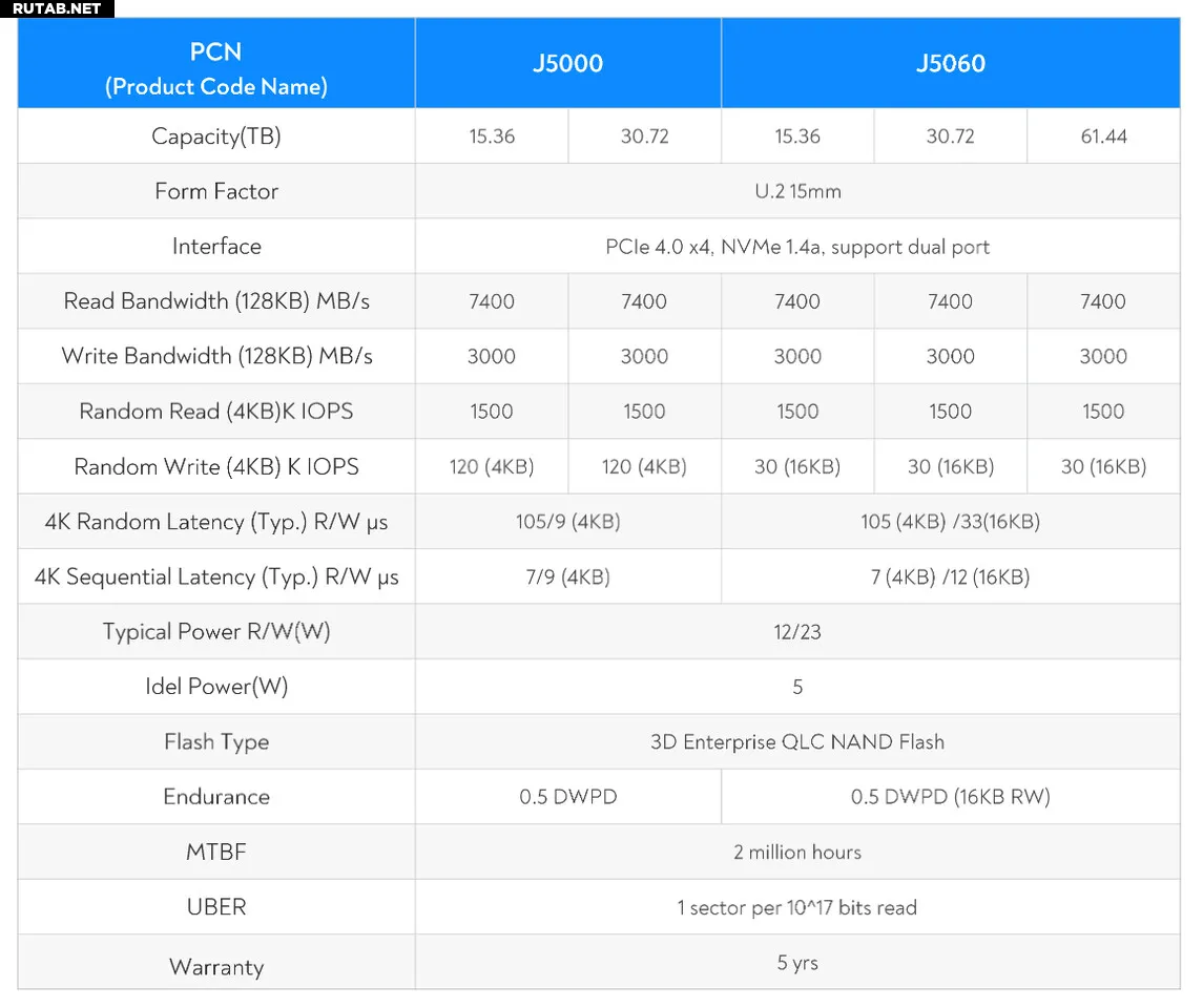 В настоящее время официально доступны DapuStor QLC SSD J5 Series емкостью 32 ТБ и 64 ТБ. Подробную информацию о продукте можно найти на сайте en.dapustor.com/product/14.