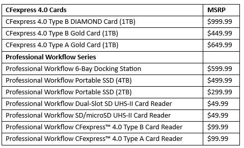 Продукты Workflow будут доступны с начала ноября. Карты CFexpress 4.0 доступны уже сейчас.
