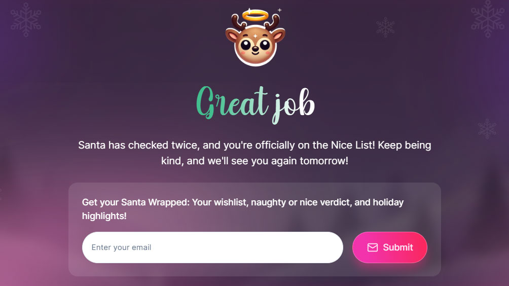 Несмотря на то, что я достаточно взрослый, чтобы играть Санта-Клауса с минимальными усилиями в области макияжа, я в полной мере насладился душевной аудиенцией с ИИ-Санта. На этом новом сезонном интерактивном сайте вы можете пообщаться с ИИ-Санта, рассказать ему, что вы хотите на Рождество, и поделиться сезонным настроением.