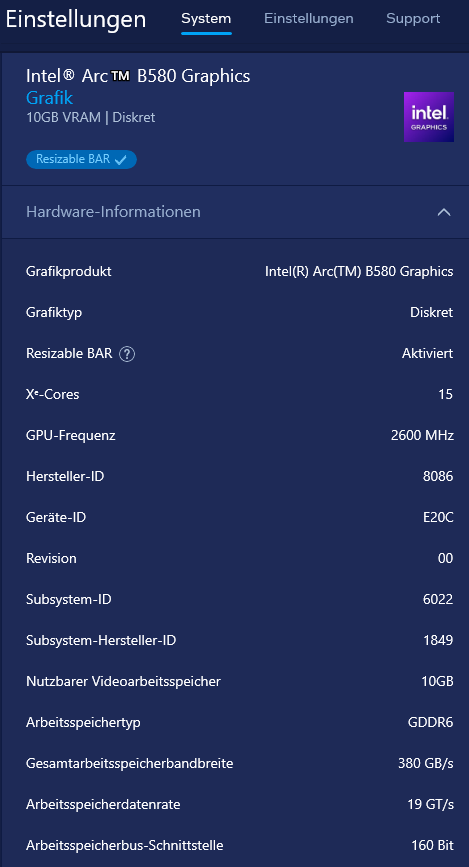 Пользователю удалось принудительно установить необходимые драйверы с помощью диспетчера устройств, игнорируя ошибки контрольной суммы и запуская каждый.exe-файл, который он мог найти в папке драйвера. После перезагрузки графический процессор был указан как Arc B580 с 10 ГБ видеопамяти и 15 ядрами Xe, несмотря на то, что карта имеет 18 ядер согласно спецификациям Intel. Поскольку пользователь до сих пор не сообщал о каких-либо сбоях или ошибках, нет смысла возиться с драйверами дальше; если что-то не сломалось, не чините его.