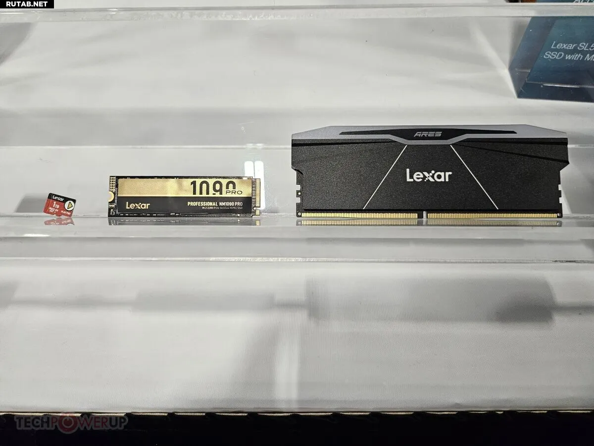 Мы зашли на стенд Lexar на международной выставке CES 2025, бренда, известного высококачественными продуктами памяти и хранения для творческих профессионалов и геймеров. Наш тур начинается с нового Lexar NM1090 PRO, флагманского твердотельного накопителя M.2 NVMe Gen 5 компании, который способен развивать последовательную скорость чтения до 14 ГБ/с и записи до 13 ГБ/с. Накопитель выпускается емкостью 1 ТБ, 2 ТБ и 4 ТБ. Затем мы увидели Lexar ARES DDR5 CUDIMM. Эта конкретная модель предлагает скорость DDR5-9600 и плотность 16 ГБ, что позволяет создавать комплекты объемом 32 ГБ. Из того, что мы слышали, он должен легко разгоняться выше отметки 10 000 МТ/с на «Arrow Lake-S» с Gear 4.