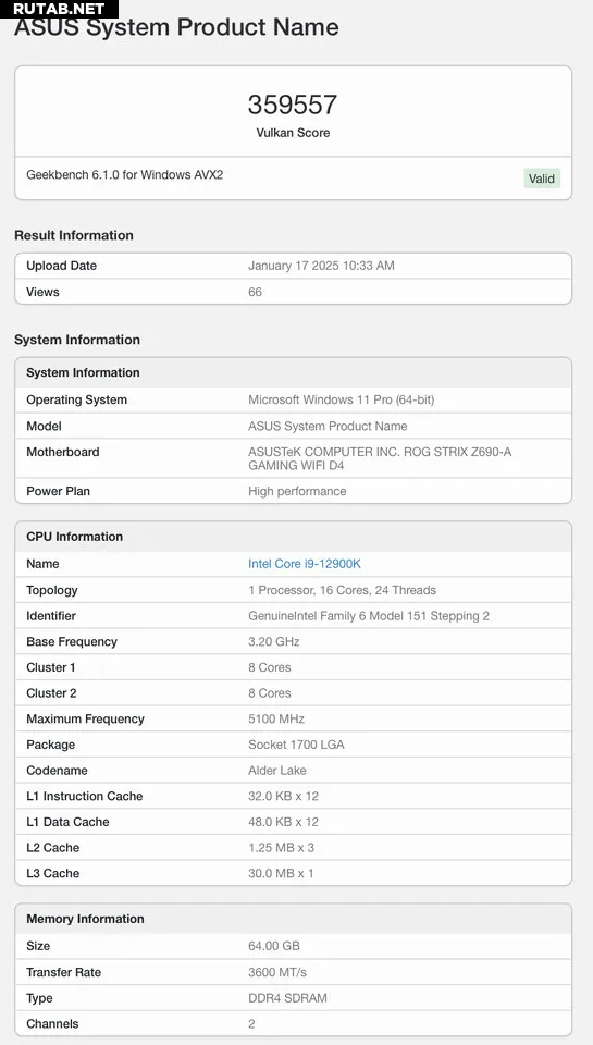 Если начать с тестов на OpenCL, то самый высокий балл, который мы пока получили от RTX 5090, составляет около 367 000 баллов, что является приемлемым отличием от RTX 4090, который, согласно официальным средним данным Geekbench, набрал около 317 000 баллов. Конечно, существует множество карт, которые могут легко превысить средние оценки, о чем следует помнить. Тем не менее, мы не знаем подробностей о тестируемом RTX 5090, поэтому сравнение со средними оценками кажется справедливым. При переходе на Vulkan производительность стала намного выше: RTX 5090 набирает минимум 331 000 точек, а максимум - около 360 000, по сравнению с 262 000 точек у RTX 4090, что на самом высоком уровне значительно выше на 37%. В очередной раз мы сравниваем лучшие результаты, опубликованные на данный момент, со средними показателями за прошлый год, поэтому ожидаем немного более скромных результатов в реальном мире. Как только после отмены эмбарго начнут появляться новые обзоры, показатели улучшения должны стать намного более достоверными.
