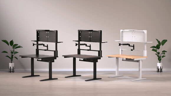 Platform:4 доступен в двух версиях: модель с фиксированной высотой 30 дюймов и версия с регулируемой высотой с двумя двигателями, Platform:4 Elevate, высота которой составляет от 29 до 48 дюймов. Вариант с фиксированной высотой предлагается в полностью черном цвете или с белыми опорами и поверхностью из березы. Elevate предлагается в трех эстетических вариантах: полностью черный с ламинированным верхом, черные опоры с верхом из березы и морилкой Dark Walnut или белый с верхом из березы и морилкой Light Casine. Platform:4 Elevate предлагает легкую регулировку высоты нажатием кнопки с ЖК-дисплеем и двумя предустановками памяти для быстрого переключения между высотой положения сидя или стоя, и он достаточно тихий, чтобы вы могли отрегулировать его во время конференц-связи, и никто не заметит.