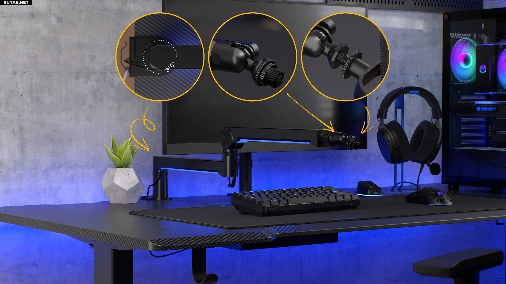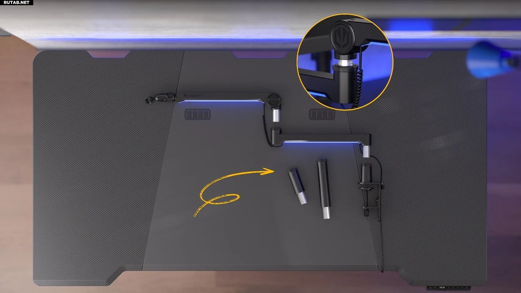 Главной отличительной чертой ENDORFY Broadcast Low Profile RGB Boom Arm является светодиодная подсветка RGB. Разработанная для создания уникальной атмосферы как в современных игровых станциях, так и в студиях звукозаписи, она может управляться скрытой сенсорной кнопкой.