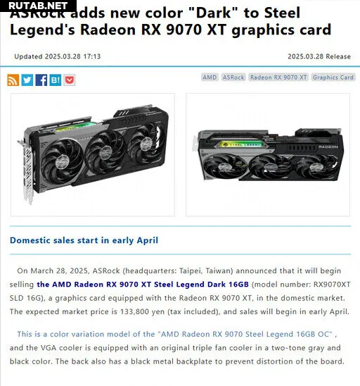 ASRock выпустит модель Radeon RX 9070 XT Steel Legend Dark в Японии в начале следующего месяца