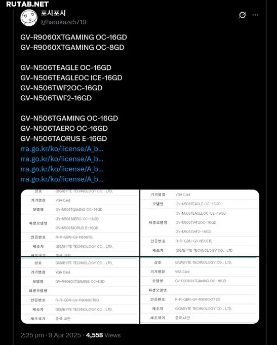 В Южной Корее зарегистрированы видеокарты GIGABYTE RX 9060 XT и RTX 5060 Ti