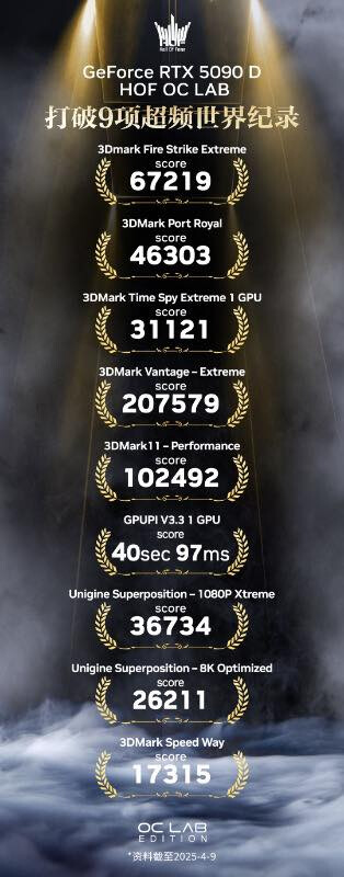 GALAX не ускорила разработку флагманского дизайна GeForce RTX 5090D, о чем свидетельствует отсутствие опции Зала славы (HOF) высшего класса на неделе запуска. «Более дешевые» варианты — в виде моделей General и 1-Click — были доступны китайской публике 30 января. Самая модная модель HOF нового поколения «Blackwell» от GALAX дебютировала с менее мощным оборудованием на борту: GeForce RTX 5080 OC LAB Plus-X Edition. В начале 2025 года GALAX раздавала ранние образцы — оборудования HOF GeForce RTX 5090D — опытным организациям, занимающимся экстремальным разгоном. В прошлом месяце почти завершенные проекты плат стали рекордсменами — достигнутыми с помощью методологий охлаждения жидким азотом. Более ранние прототипы имели один 16-контактный разъем питания, но более новые итерации Extreme Overclock (XOC) распространялись со вторым каналом подачи питания.