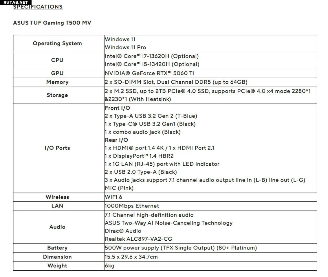Компания ASUS представила новый игровой десктоп TUF Gaming T500, который сочетает компактные размеры и мощные компоненты для комфортного гейминга. Система оснащена процессором Intel Core i7-13620H (6 ядер Performance и 8 ядер Efficiency, до 5.0 ГГц), видеокартой NVIDIA GeForce RTX 5060 Ti на архитектуре Blackwell, до 64 ГБ оперативной памяти DDR5 и накопителем PCIe 4.0 до 2 ТБ.