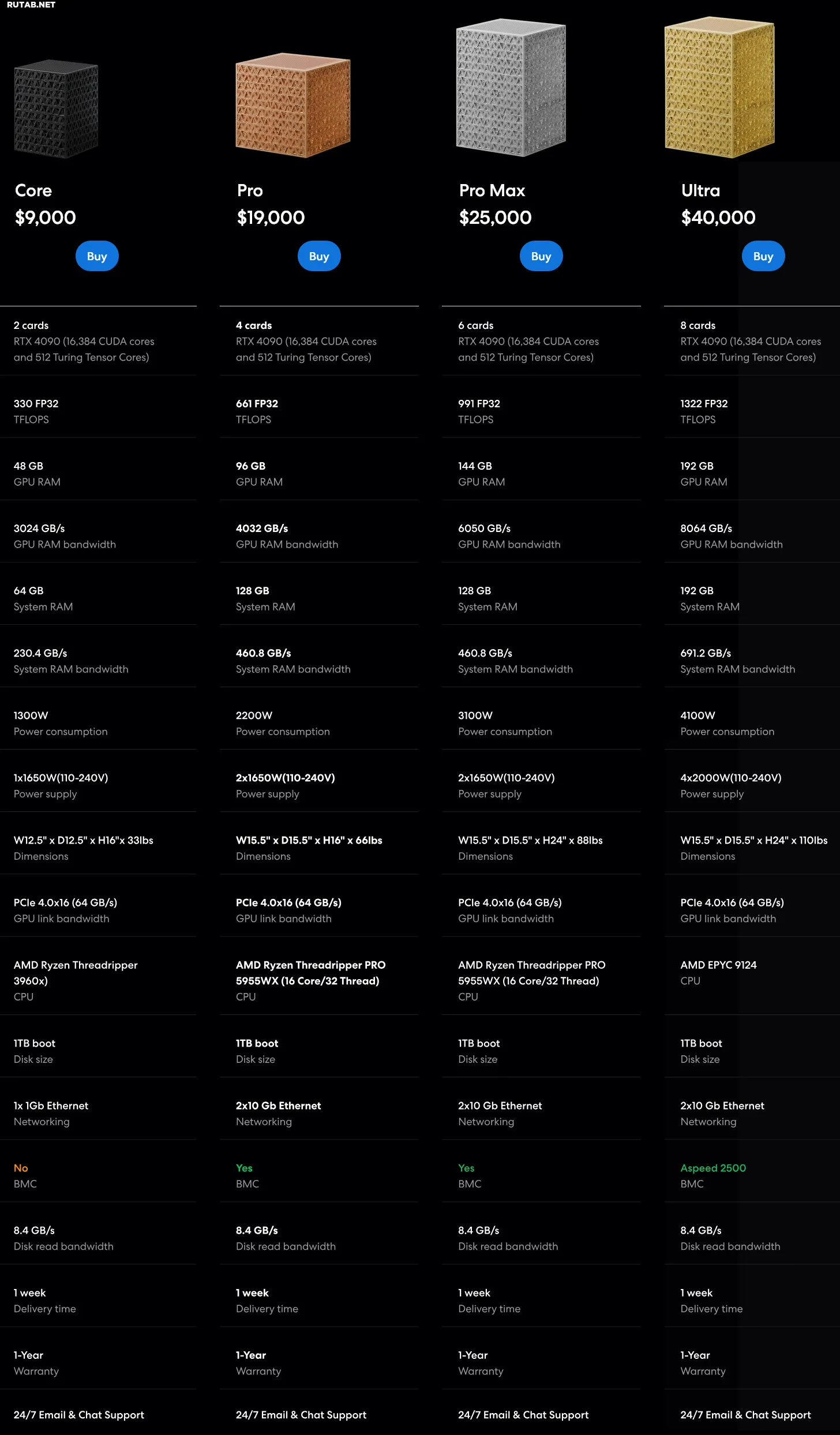 - Производительность: до петафлопса благодаря NVIDIA RTX 4090 (масштабируется от 2 до 8 GPU).