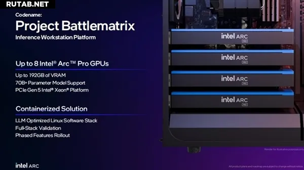 Карты поддерживают объединение до 8 устройств (192 ГБ общей видеопамяти) для работы с крупными AI-моделями. Intel также представила платформу Project Battlematrix с поддержкой до 8 карт B60 для работы с моделями до 150 млрд параметров.