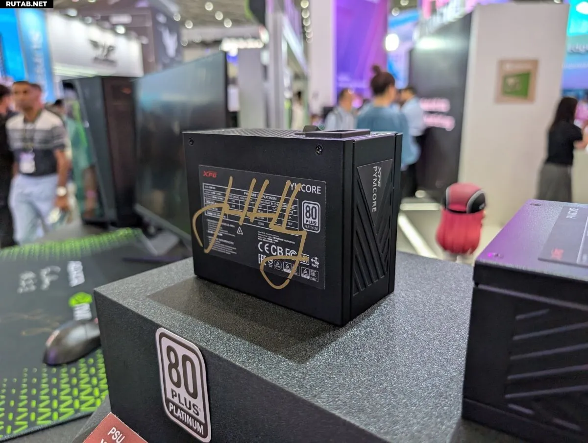 Особое внимание привлек экземпляр с автографом Дженсена Хуанга, CEO NVIDIA. Также компания показала обновленную версию блока питания FUSION мощностью 1600 Вт с двумя разъемами 12V2x6 и 12-летней гарантией.