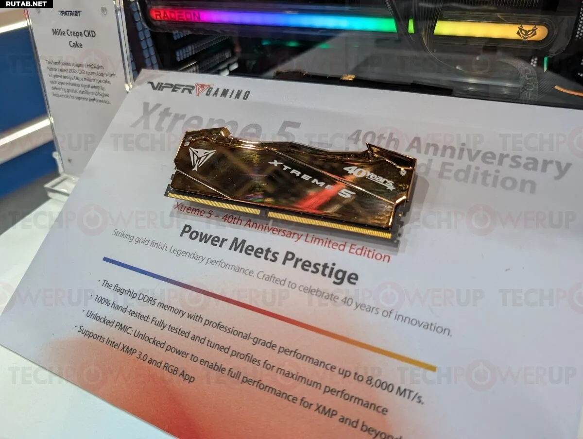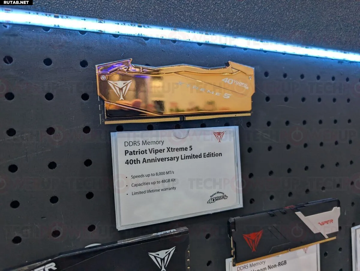 В ассортименте представлены модули DDR5 различных серий: Patriot Signature Line, Viper Venom RGB и без подсветки, Viper Elite 5 Ultra (в версиях с RGB и без, включая вариант в сотрудничестве с TUF Gaming Alliance), а также флагманская линейка Viper Xtreme 5. Последняя доступна в вариантах с RGB-подсветкой (включая версию MPOWER), без подсветки, CKD RGB и CKD без подсветки. Особого внимания заслуживает юбилейная версия с объёмом до 48 ГБ и скоростью до 8000 МТ/с. Модули Viper Xtreme 5 CKD смогут достигать 9600 МТ/с. Также были продемонстрированы компактные CKD CSODIMM объёмом до 32 ГБ и скоростью до 7200 МТ/с.