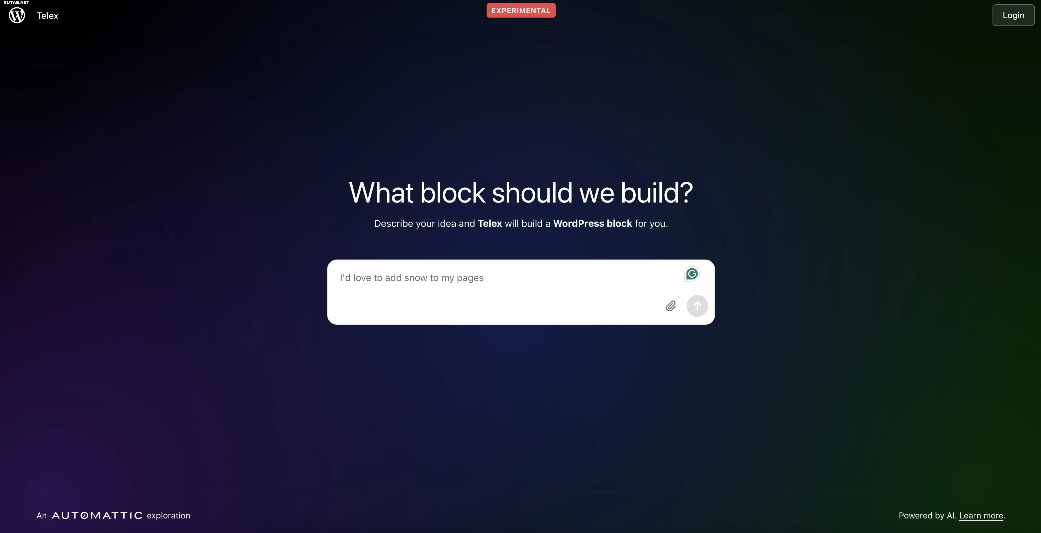 Доступный на отдельном домене telex.automattic.ai, Telex на текущий момент помечен как «экспериментальный». Чтобы воспользоваться сервисом, нужно ввести промпт с описанием желаемого блока контента. В ответ система генерирует ZIP-файл, который можно установить как плагин на сайт WordPress или в WordPress Playground (платформу, позволяющую запускать WordPress в браузере на любом устройстве без хостинга).