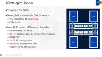 В сентябре 2024 года Intel представила флагманскую серию Xeon 6900 под кодовым названием Granite Rapids-AP, ориентированную на требовательные облачные вычисления, научные исследования и задачи ИИ. Эти процессоры позволяют разместить больше производительных ядер в том же пространстве (до 128 ядер на сокет), обеспечивают повышенную пропускную способность памяти (12-канальная память с поддержкой MRDIMM 8800 МТ/с), больше линий PCIe 5.0 (96) или CXL 2.0 (64), а также 6 каналов UPI 2.0.