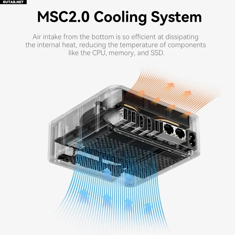 Beelink заявляет, что система охлаждения MCS2.0 и «тихий» вентилятор позволяют ПК работать с уровнем шума 32 дБ. Правда, не уточняется, идёт ли речь о режиме простоя или под нагрузкой, так что к этому заявлению стоит относиться с долей скепсиса.