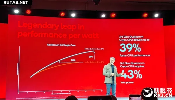 По заявлениям Qualcomm, пиковая производительность одного ядра нового CPU выросла на 39%, а энергопотребление снизилось на 43% по сравнению с первым поколением Oryon. По сравнению с предыдущим флагманом прирост составляет 20% в однопоточных задачах, 17% в многопоточных и 32% в скорости веб-браузера.