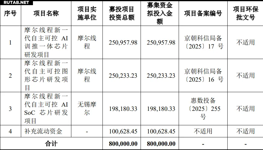 Согласно отчету о IPO, Moore Threads привлечет 80 миллиардов юаней в ходе размещения. Это крупнейший проект по привлечению капитала, одобренный в этом году. Средства будут направлены на разработку нового поколения самостоятельно разрабатываемых ИИ-чипов для обучения и логического вывода, нового поколения графических чипов, нового поколения ИИ-систем-на-кристалле (SoC), а также на пополнение оборотных средств.