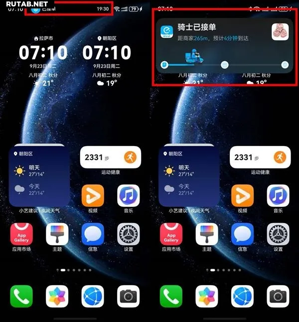 В повседневном использовании владельцы устройств на HarmonyOS могут просто взглянуть на экран, чтобы через «живое окно» на заблокированном или активном экране, в шторке уведомлений или строке состояния увидеть актуальную информацию, например, принял ли водитель заказ, номер машины или расстояние до курьера с едой.