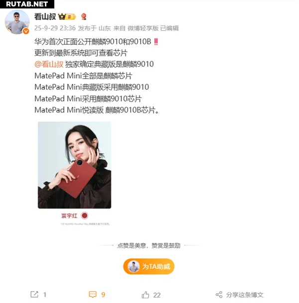 Цифровой блогер «看山叔» сообщил в Weibo, что вся линейка Huawei MatePad Mini оснащена процессорами Kirin.
