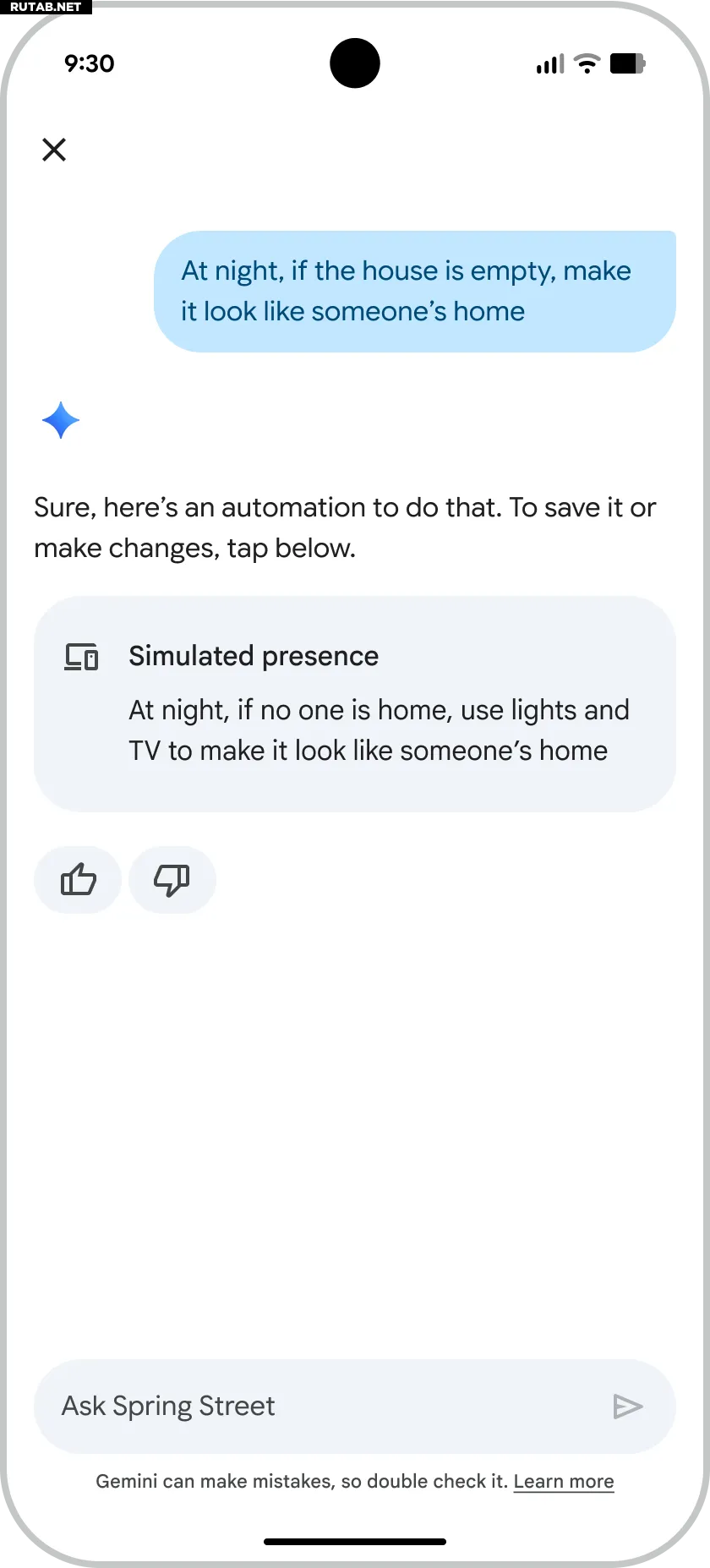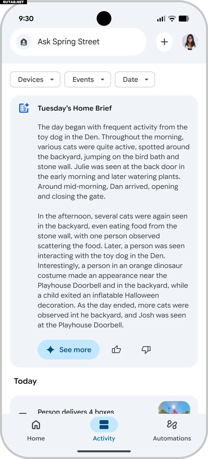 Также в приложении Google Home появилась функция «Домашний брифинг», которая суммирует события за последние 24 часа: доставленные посылки, визиты людей, действия домашних животных. Пользователи могут задавать Gemini вопросы вроде «Во сколько дети пришли из школы?» или «Приходил ли курьер?».