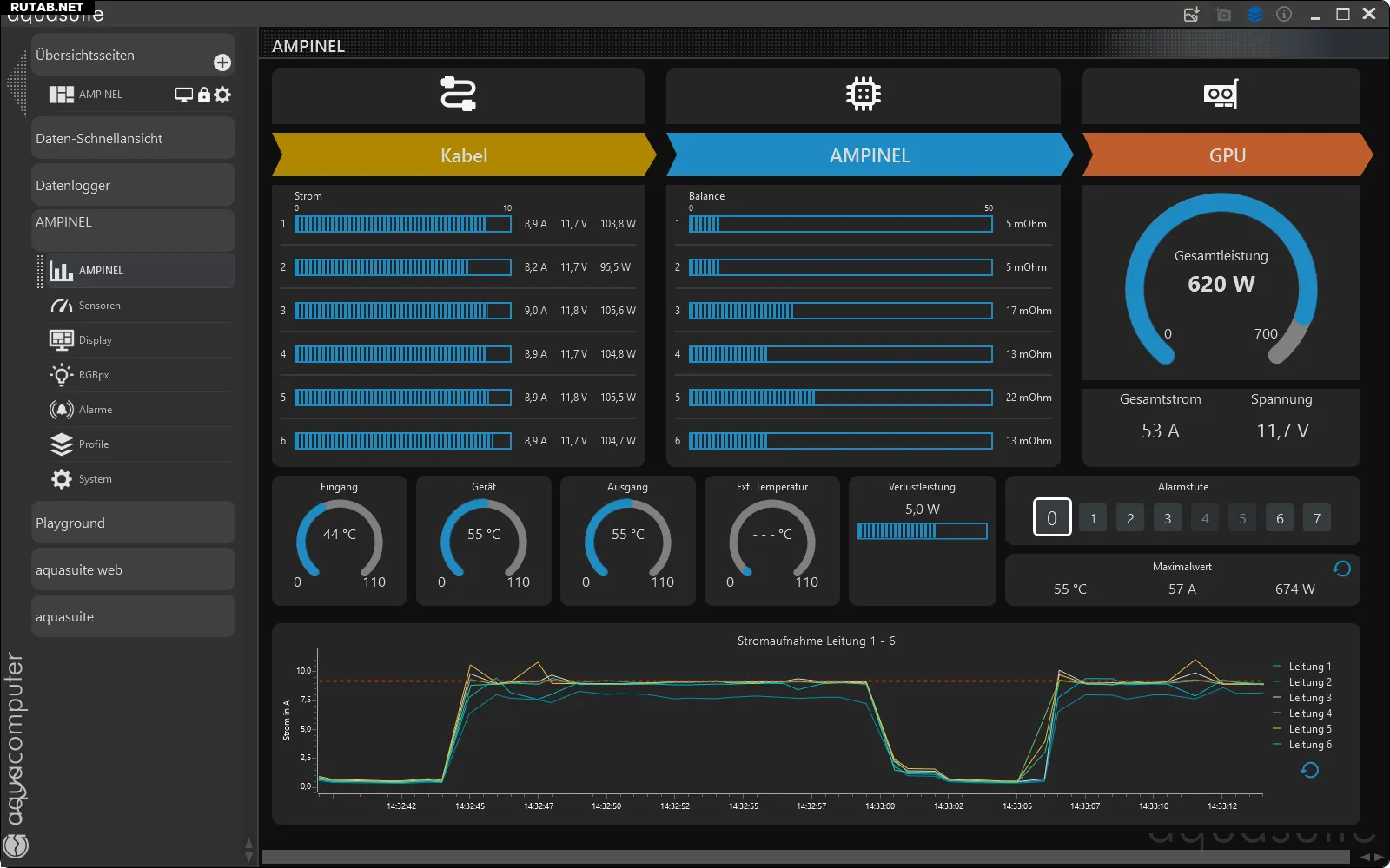Ampinel решает эту проблему за счет активного мониторинга и балансировки нагрузки. Устройство подключается между блоком питания и видеокартой, отслеживая ток и напряжение по всем шести силовым каналам.