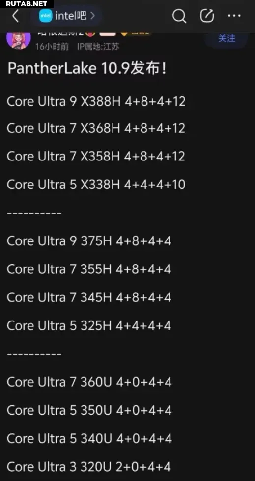 Intel Panther Lake: утечка полного списка процессоров — 12 моделей, включая четыре Core Ultra X