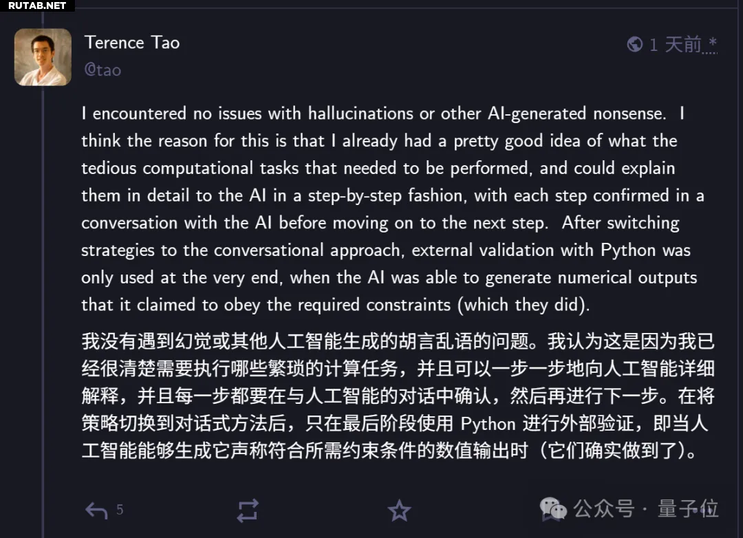 Более того, для обеспечения надежности результата Тао использовал сгенерированный GPT-5 Python-скрипт из 29 строк для независимой проверки.