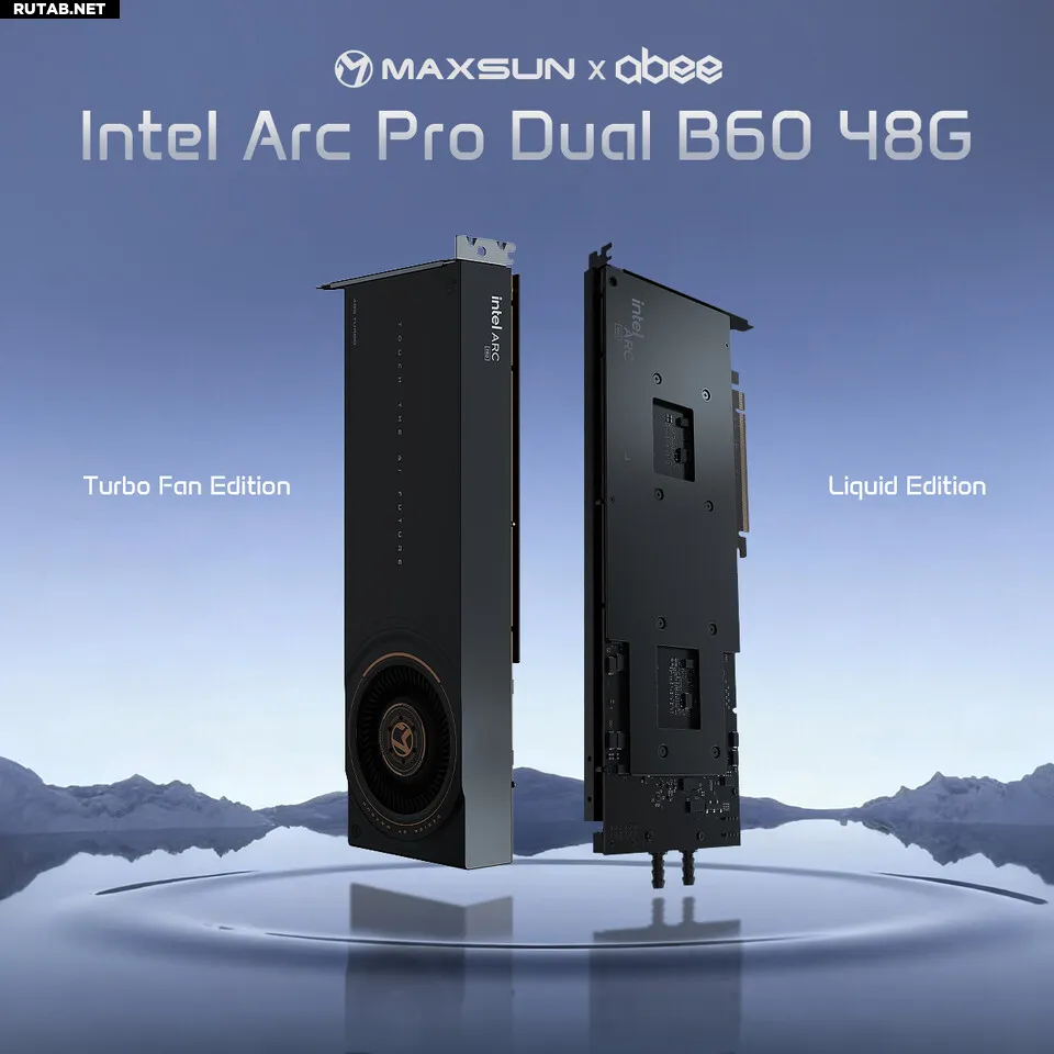 Китайский производитель видеокарт Maxsun снова отличился: компания выпустила двухслотовую модель Arc B60 с жидкостным охлаждением, которая помещается в один слот PCIe. Компания подтвердила выпуск двух моделей: классической двухслотовой с турбинным охлаждением и неожиданной однослотовой с жидкостным охлаждением, каждая из которых содержит пару графических процессоров Arc Pro B60.
