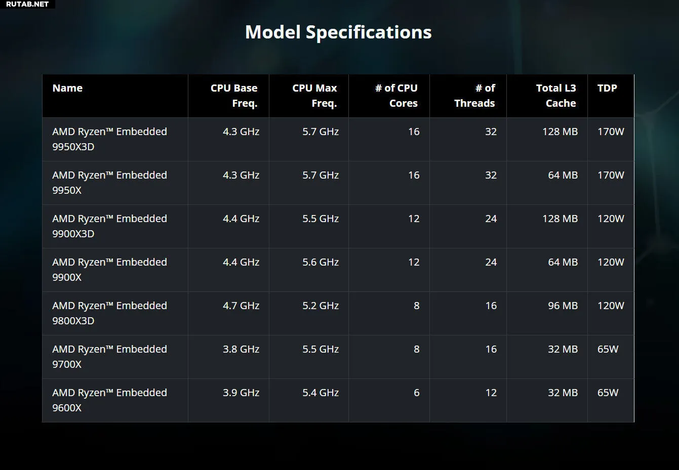 В основе серии лежит архитектура «Zen 5» с техпроцессом 4 нм. Процессоры предлагают до 16 высокопроизводительных ядер с настраиваемым энергопотреблением от 65 до 170 Вт. Это позволяет адаптировать системы как для энергоэффективных задач управления, так и для высокопроизводительных систем машинного зрения на производстве.
