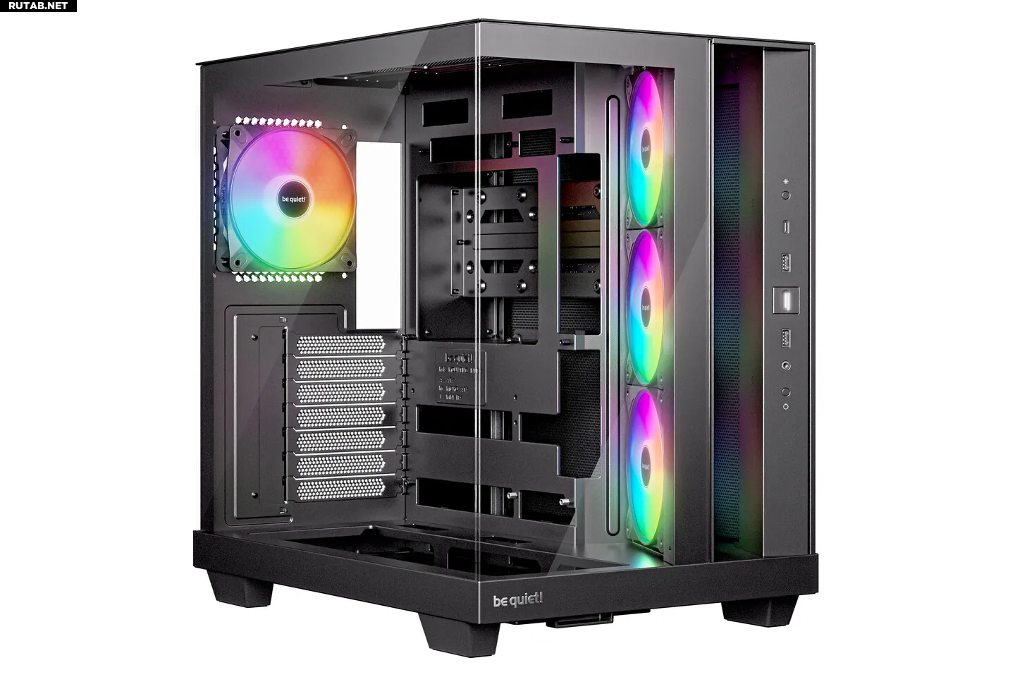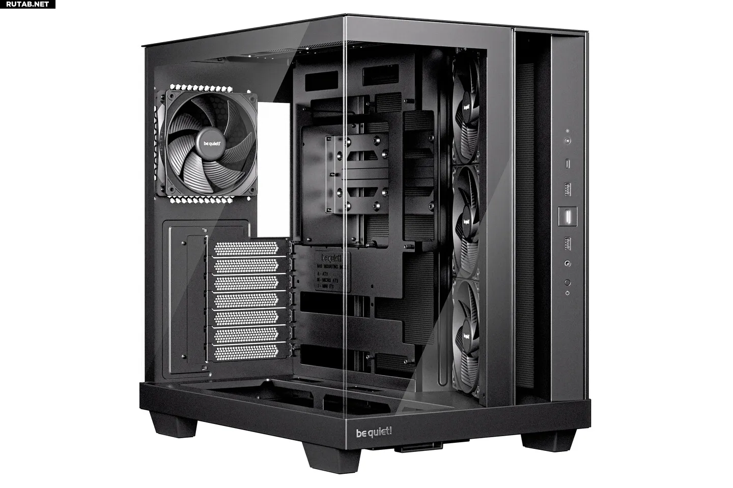 Модель без RGB-подсветки предлагает сдержанный и стильный внешний вид. В комплектации — четыре предустановленных вентилятора Pure Wings 3 120 мм PWM: три с реверсивными лопастями на боковом intake и один на заднем exhaust. Корпус сохраняет интеллектуальную конструкцию LX-версии, включая наклонную рамку для вентиляторов и пониженный отсек. Вмещает до двух HDD и двух SSD. Будет доступен исключительно в черном цвете.