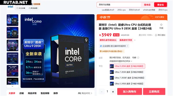 На китайском рынке коробочная версия Ultra 9 285K в официальном магазине Intel на JD.com продаётся по цене 3949 юаней, что также является историческим минимумом. По сравнению с первоначальной ценой в 4799 юаней в прошлом году, она снизилась на 850 юаней.